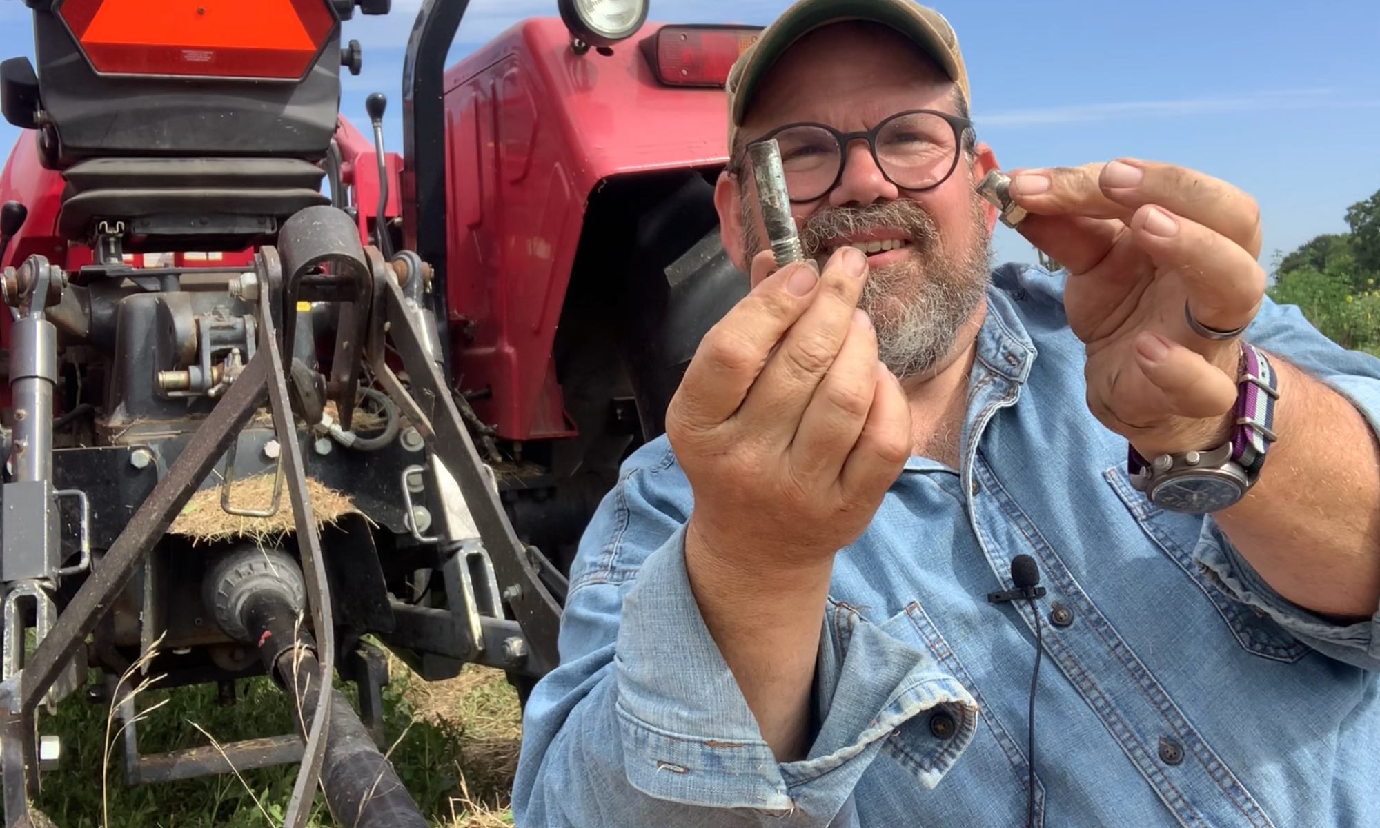 A shear bolt, if you haven’t watched today’s video, is a bolt designed to break (or sheer) if the blade of the shredder hits something that would otherwise damage the machinery. Expensive machinery is protected from breaking by a cheap and replaceable bolt. Brilliant idea! Stop and watch the video if you haven’t already!